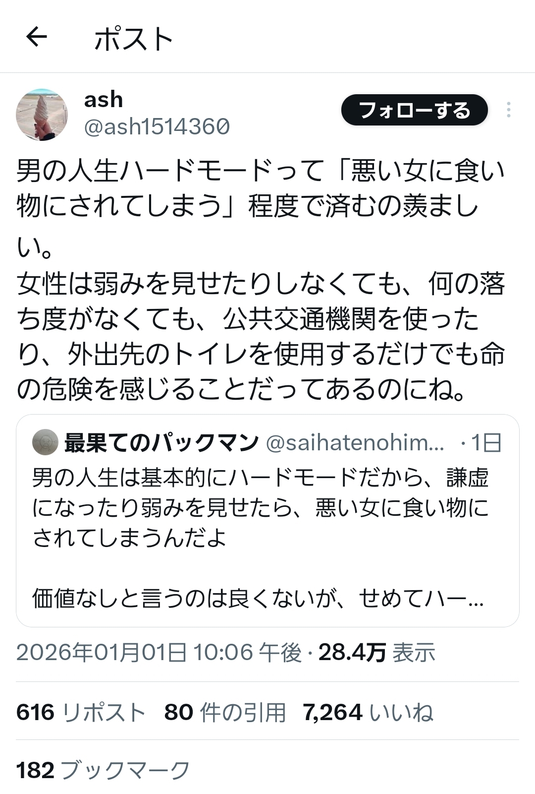 | … | 52無念Nameとしあき26/01/03(土)11:10:40No.1377579330+>女は常に狙われてるというのは事実だと思う |