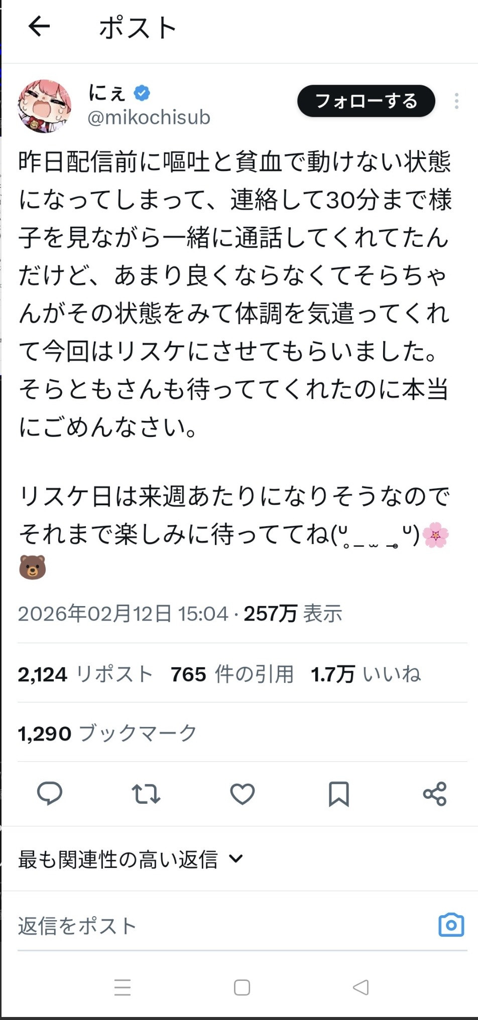 みこち体調大丈夫なんだろうか…レス40件省略。全て読むには返信ボタンを押してください。