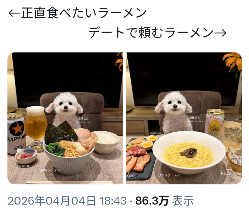 | … | 24無念Nameとしあき26/04/06(月)07:07:05No.1398932018+トリュフラーメンとか食ってみてえ |