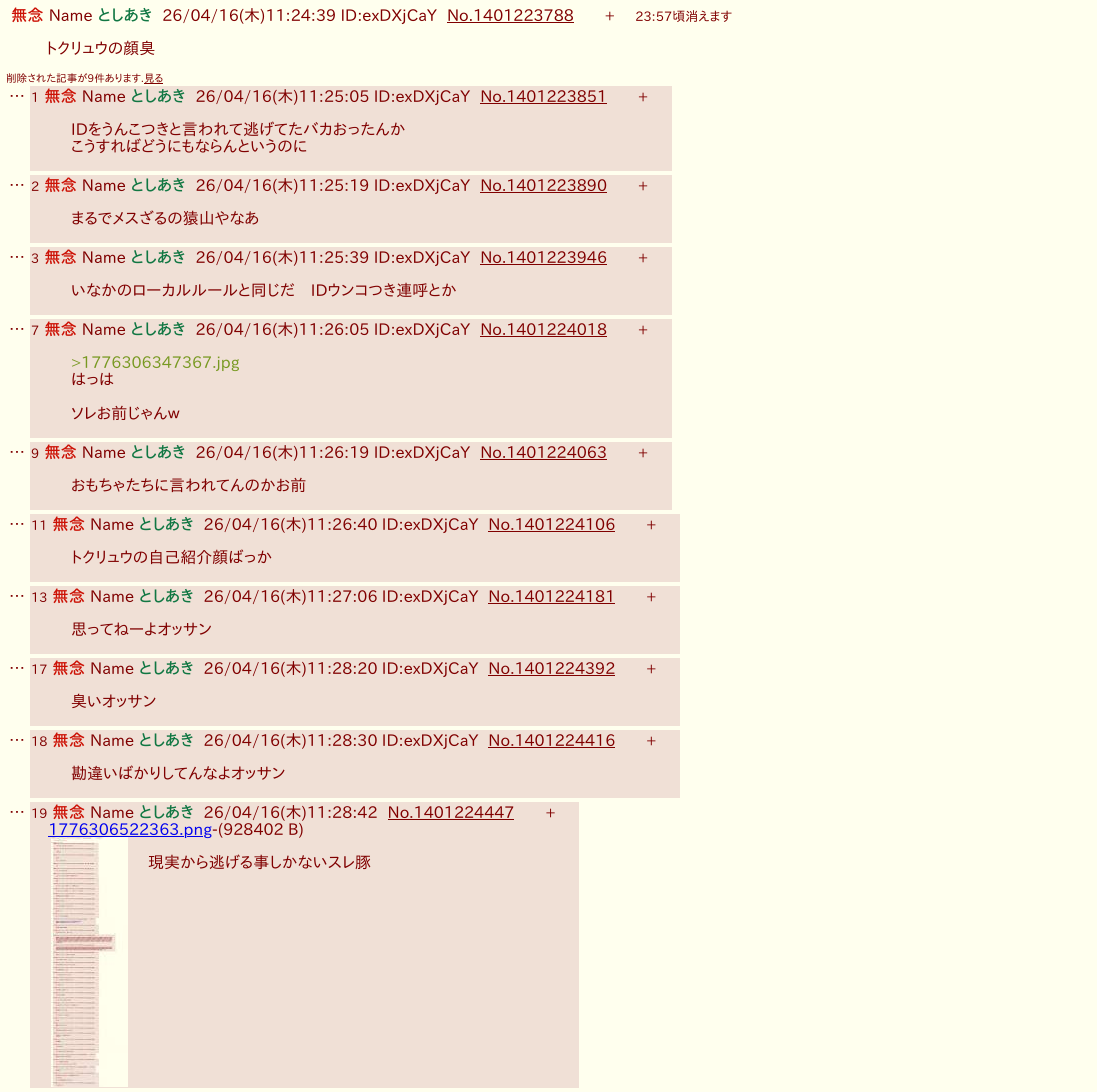 | … | 28無念Nameとしあき26/04/16(木)22:56:13No.1401367579+スレッドを立てた人によって削除されました |