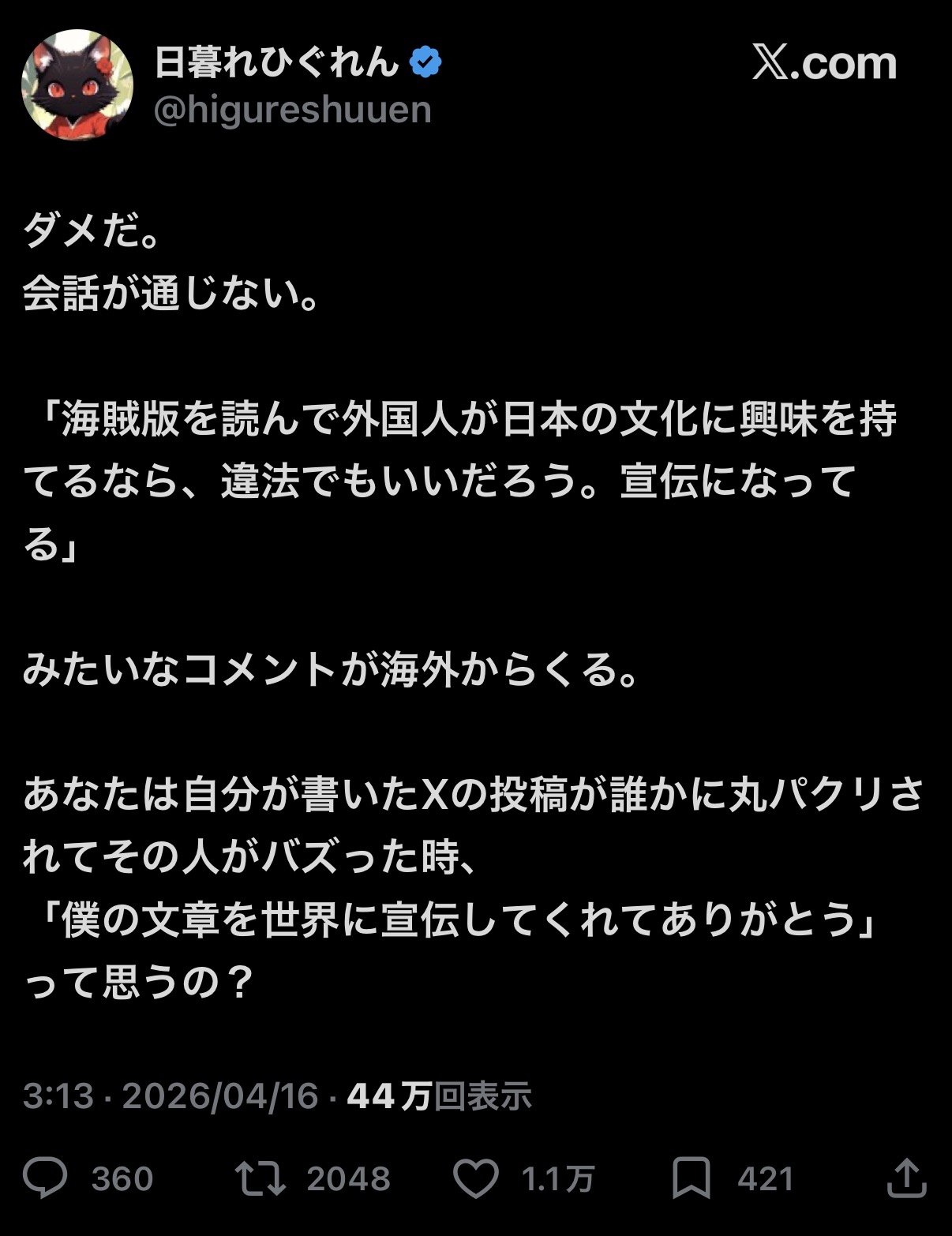 | … | 42無念Nameとしあき26/04/16(木)23:34:32No.1401375507+明確に丸パクりと証明できるんだからありがとうってなるんじゃねえの? |