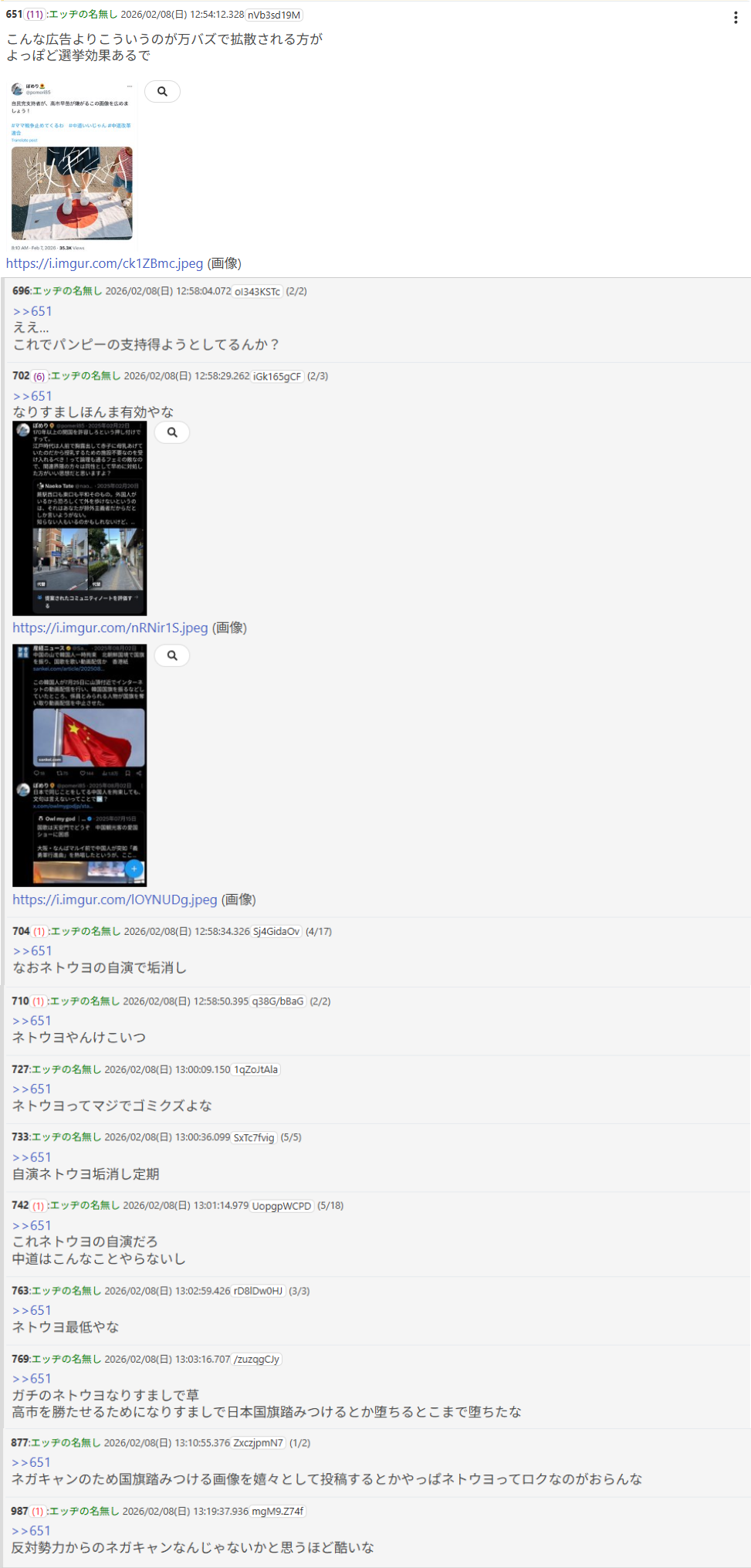 | … | 46無念Nameとしあき26/02/08(日)17:52:17No.1385851502そうだねx1>今回勝ち目ないのに必死になってんのは中国から指示来てるからなんかね |