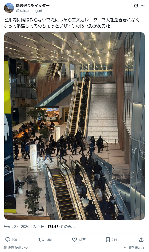 | … | 36無念Nameとしあき26/02/04(水)18:56:46No.1384896151+エスカレーターなんで減らしたのこれ |