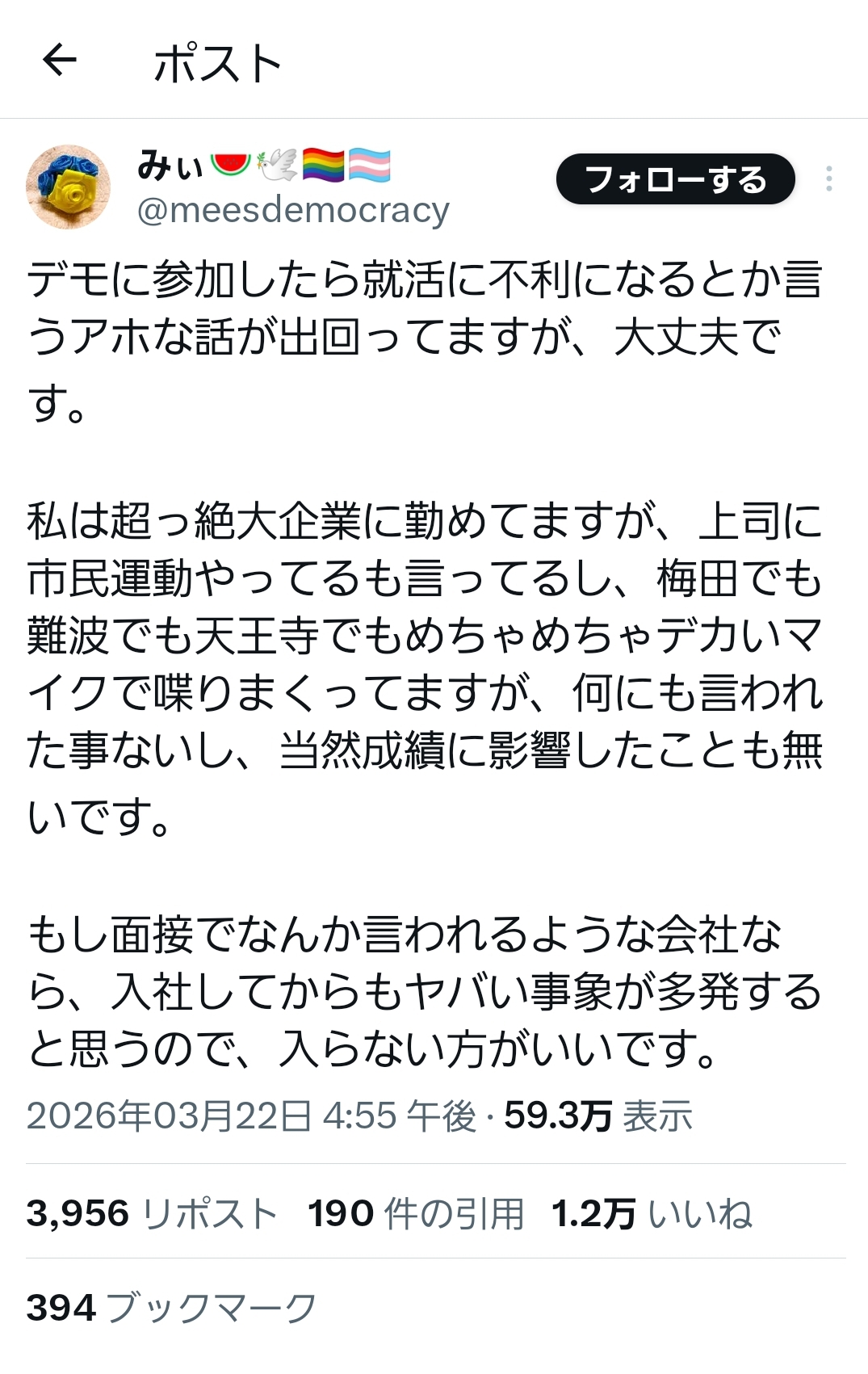 | … | 8無念Nameとしあき26/03/23(月)11:06:21No.1395796745+まず面接で「市民活動してます」なんて堂々と言う奴は考えないといけない |