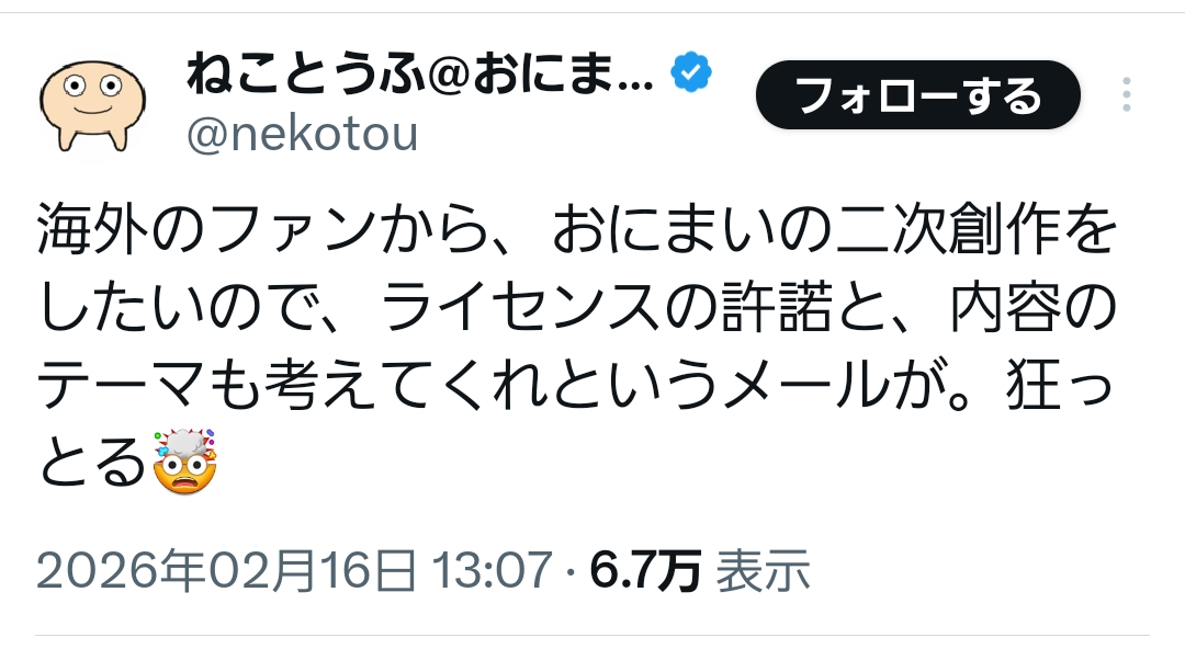 | … | 28無念Nameとしあき26/02/17(火)01:56:13No.1387969763+>>アメリカだと二次創作は公式に許可貰わないと作れんそうな |