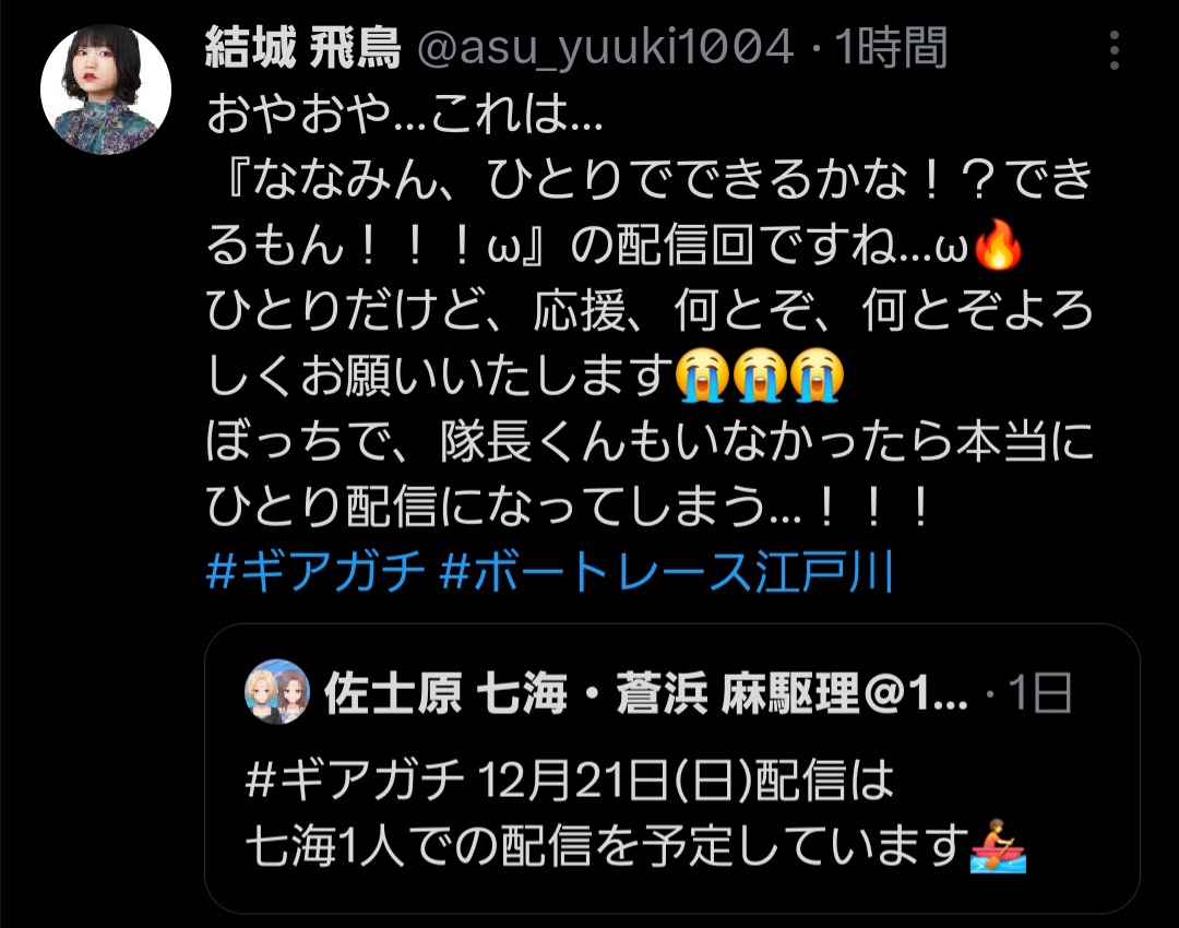 | … | 10無念Nameとしあき25/12/03(水)23:19:21No.1370616408+ななみんが調子悪くなったら声が似た人呼んでくればいいんだゾ☆ |