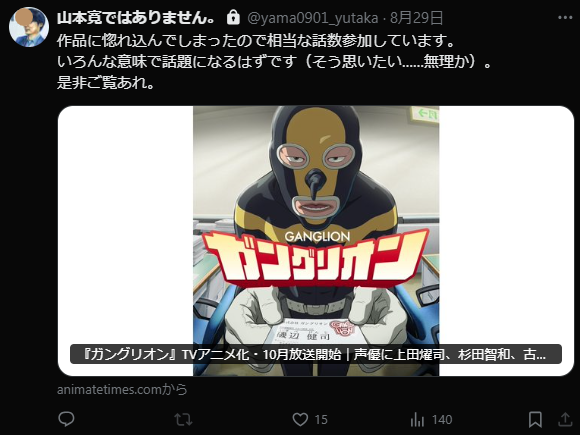| … | 19無念Nameとしあき25/11/16(日)01:06:52No.1366435030そうだねx1>ちょうど土曜22:55〜59にコンテで複数回関わると広宣流布していたガングリオンのBS放送なのに・・・ |