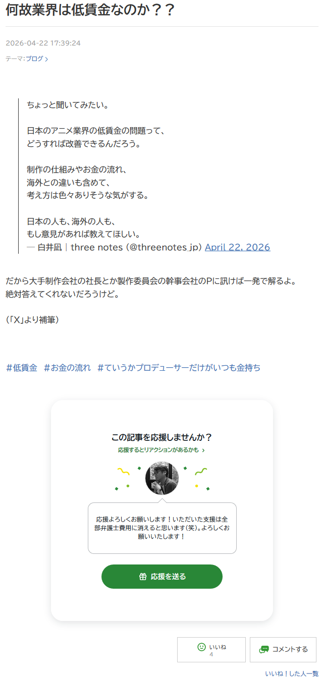 プロフェッショナル部門()のAmebaオフィシャルブロガー()な自称アニメ監督スレ