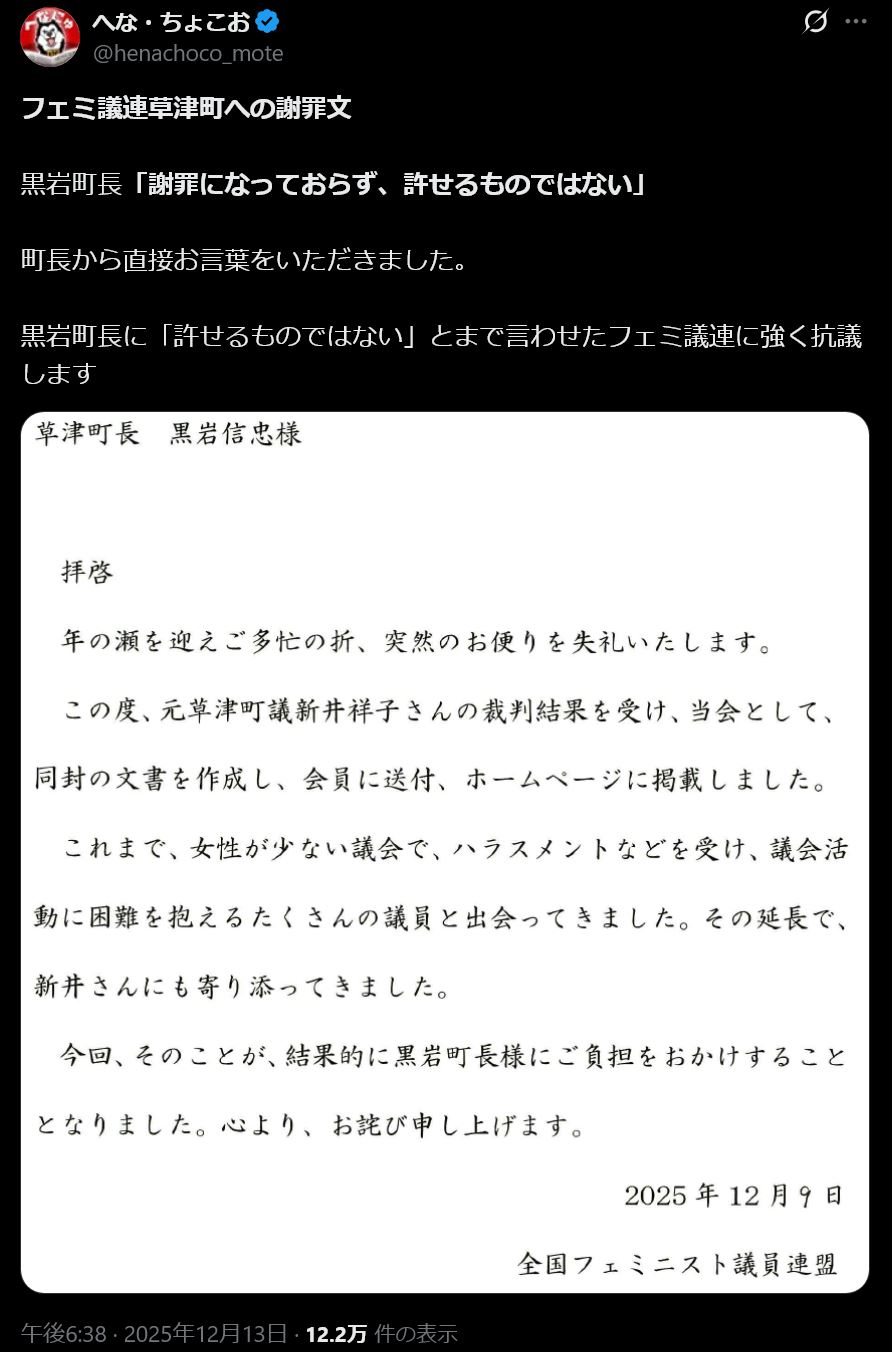 | … | 33無念Nameとしあき25/12/14(日)00:11:05No.1372877807+謝ったら負けってどっかの国みたーい |