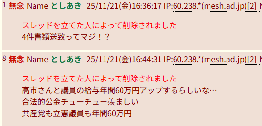 | … | 11無念Nameとしあき25/11/21(金)16:50:56 IP:60.238.*(mesh.ad.jp)No.1367664694+中国との緊張も高まってきたし |