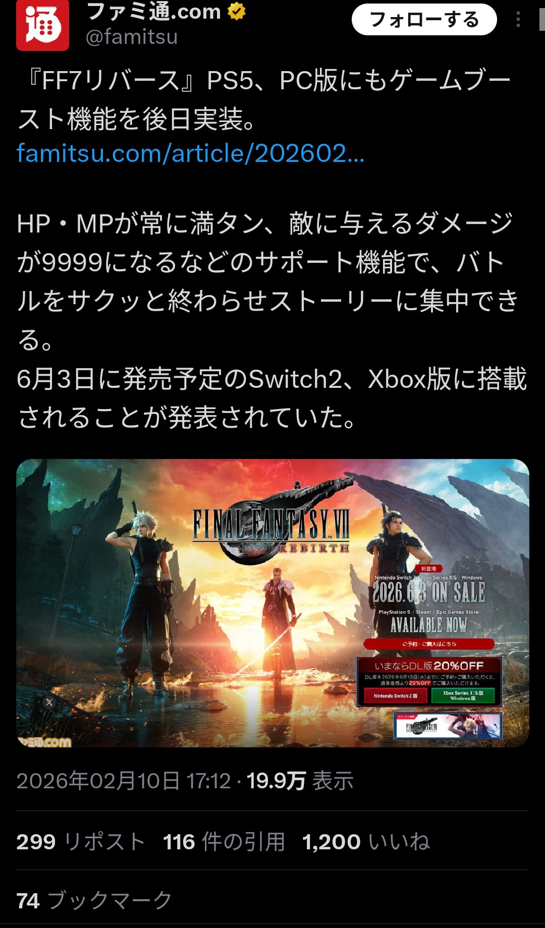 | … | 53無念Nameとしあき26/02/10(火)00:54:21No.1386276285+黒竜ソロ討伐完了! |