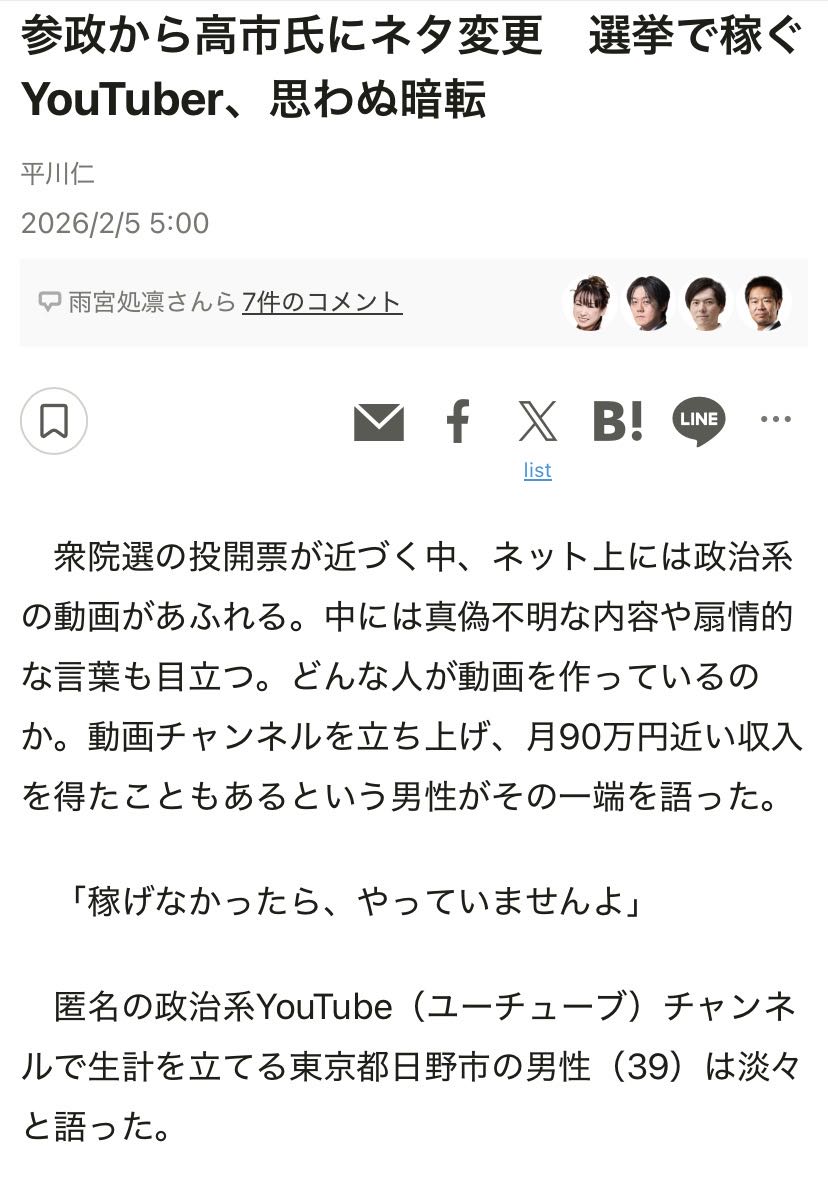 | … | 29無念Nameとしあき26/02/10(火)02:30:28No.1386284028+ 1770658228048.jpg-(119363 B) 参政党で稼いでた切り抜き職人が雪崩を打って高市に向かった |
