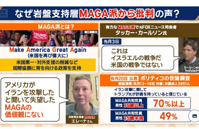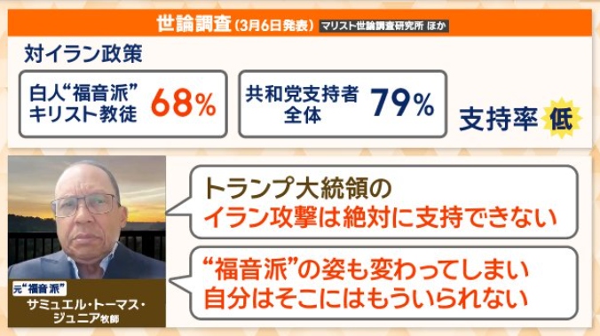 イラン攻撃支持の福音派は68%と共和党支持者全体より低くなってしまう