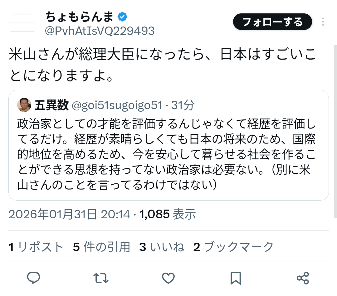 | … | 39無念Nameとしあき26/01/31(土)20:36:12No.1383996834+>勉強は誰よりも得意と言っていいレベルだけど政治家適正は皆無だしネット音痴 |