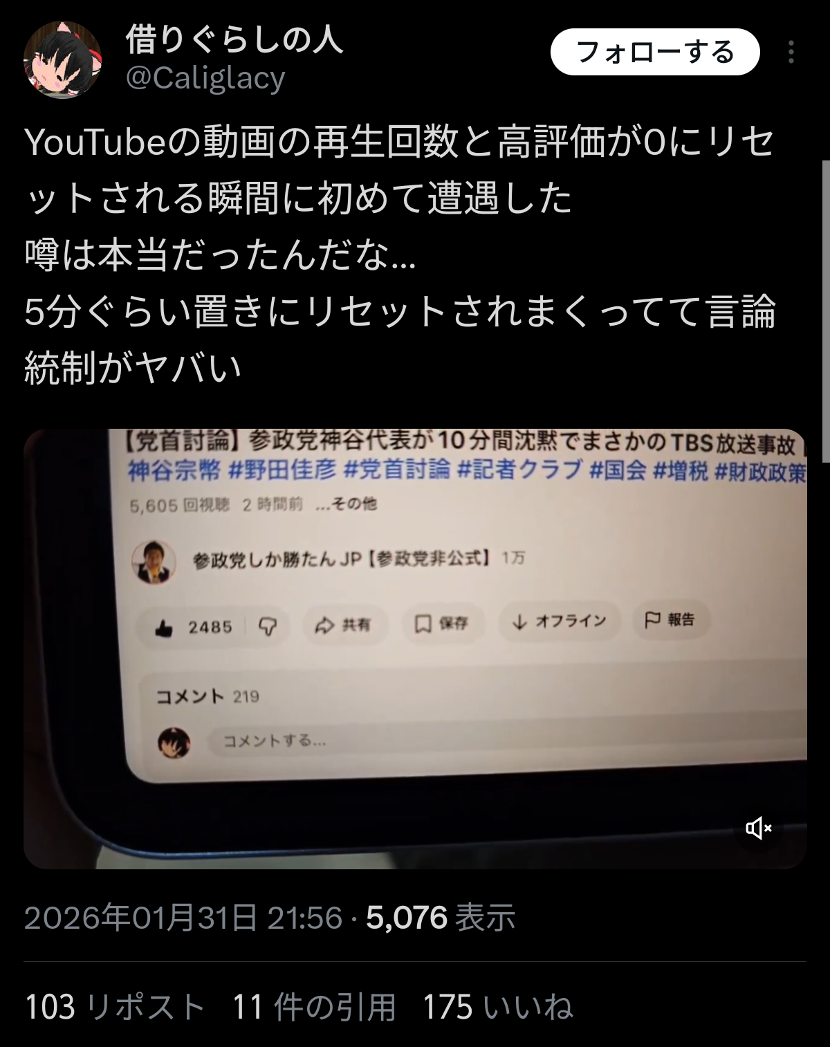 YouTubeで関連動画の再生数・好評価数をリセットされる妨害工作受ける
