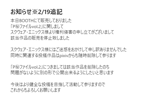| … | 28無念Nameとしあき26/02/23(月)03:21:08No.1389385969+>これでもう誰もスクエニの二次創作しなくなるだろうな |