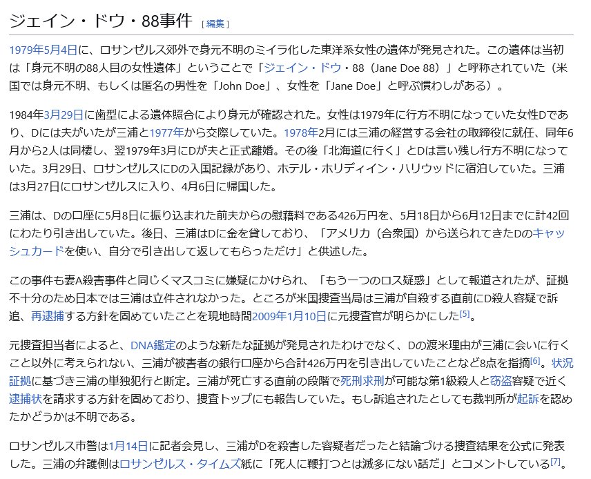 | … | 27無念Nameとしあき26/04/05(日)22:19:07No.1398878297そうだねx2>三浦は、Dの口座に5月8日に振り込まれた前夫からの慰藉料である426万円を、5月18日から6月12日までに計42回にわたり引き出していた。後日、三浦は口に金を貸しており、「アメリカ(合衆国)から送られてきたDのキャッシュカードを使い、自分で引き出して返してもらっただけ」と供述した。 |
