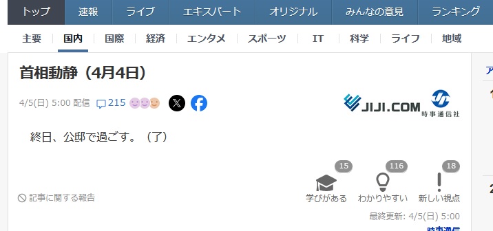 | … | 54無念Nameとしあき26/04/06(月)01:23:55No.1398917492そうだねx1健康上の問題で仕事出来ないなら安倍のように辞任しろ |