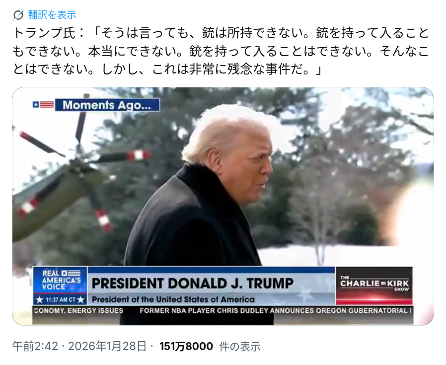 | … | 4無念Nameとしあき26/01/28(水)08:52:05No.1383208064+NRA「銃の所持は国民の権利」 |