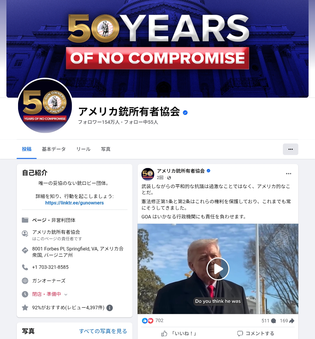 | … | 9無念Nameとしあき26/01/28(水)08:59:45No.1383208810そうだねx1 1769558385250.jpg-(602680 B) NRAに次いで二番目に大きな銃擁護団体の |