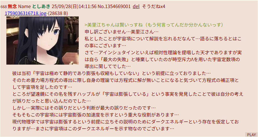 … | 486無念Nameとしあき25/10/01(水)03:51:05No.1355351394+アクトレスの子達は宇宙物理学も修めていたのを思い出す怪文書っす |
