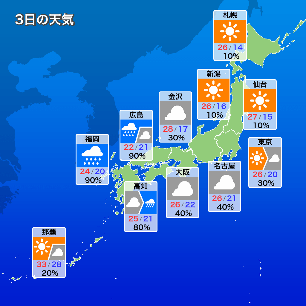… | 5無念Nameとしあき25/10/03(金)09:01:26No.1355814029そうだねx5 1759449686049.png-(61115 B) ![]() 3日(金)は前線や低気圧の影響を受けますぽん |