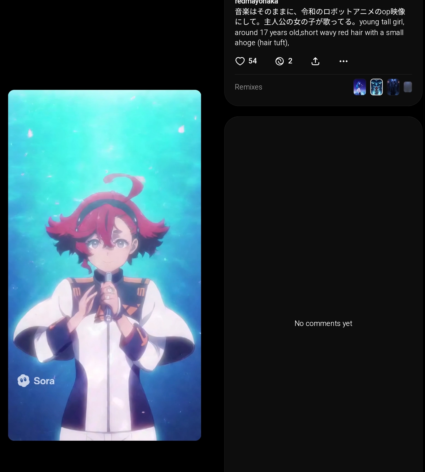 … | 93無念Nameとしあき25/10/04(土)21:57:12No.1356242200そうだねx10 1759582632637.mp4-(4529555 B) ![]() 「Prompt:ぼっちちゃんがsora2でいつもAI生成の対象になることについて反応」 |