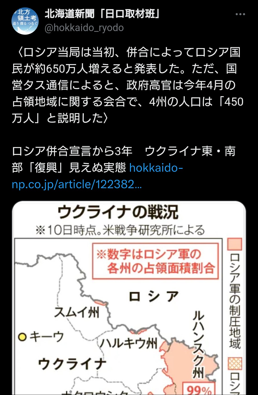 … | 932無念Nameとしあき25/10/14(火)02:25:02No.1358590716+>ロシアがウクライナの領土を19%も支配してる |