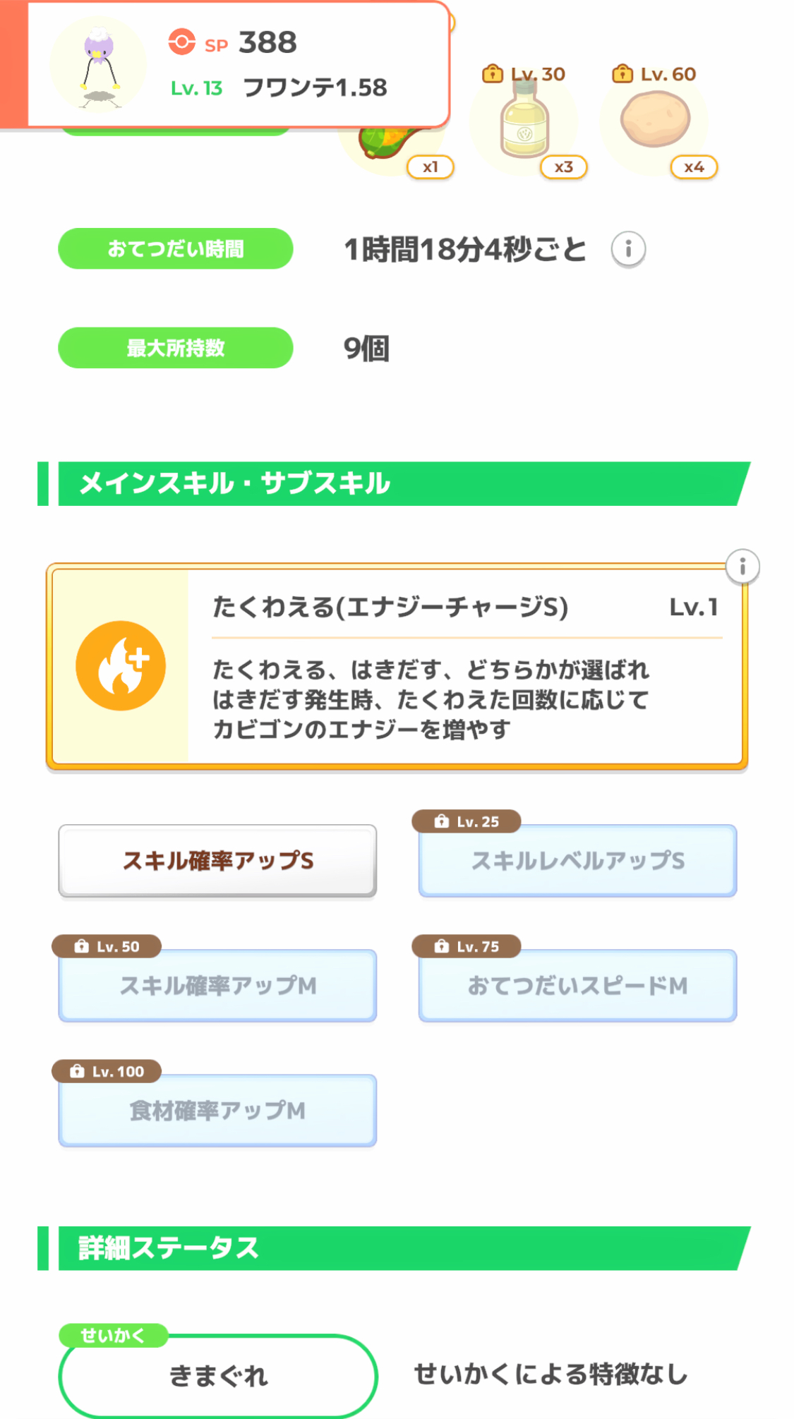 … | 54無念Nameとしあき25/10/14(火)11:15:39No.1358630628+>ぶっちゃけAAAで食材確立アップ2つ積んでる個体で持ってくる食材が物足りない場合は外付け要素に頼るしかないよ |