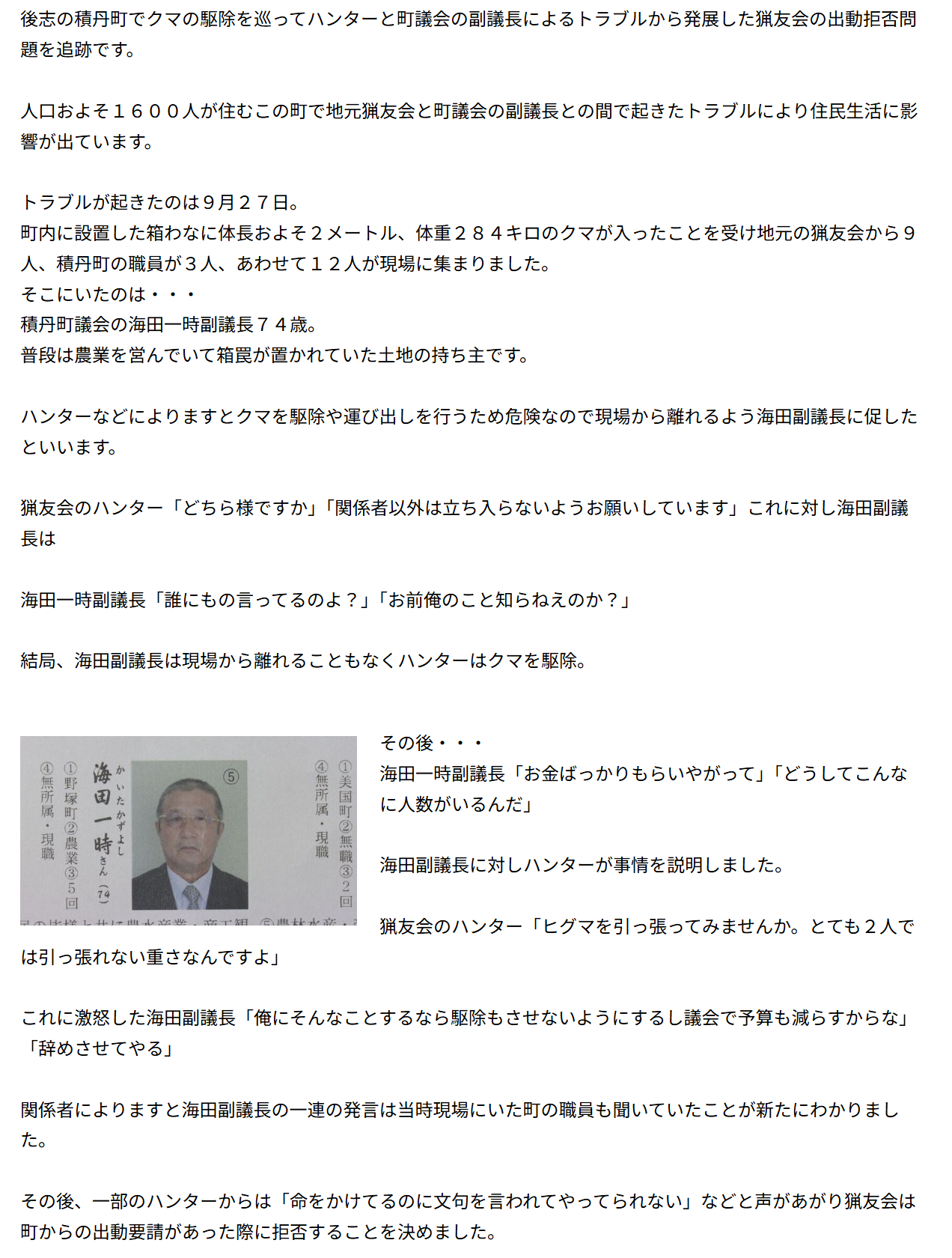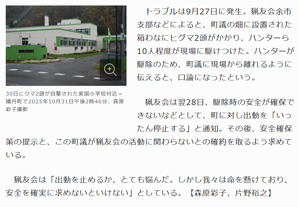 | … | 357無念Nameとしあき25/11/05(水)08:40:45No.1363899347+道猟友会は与市猟友会を全面的に支持してるし町は町民が副議長外すと決めなきゃ事は動かん |