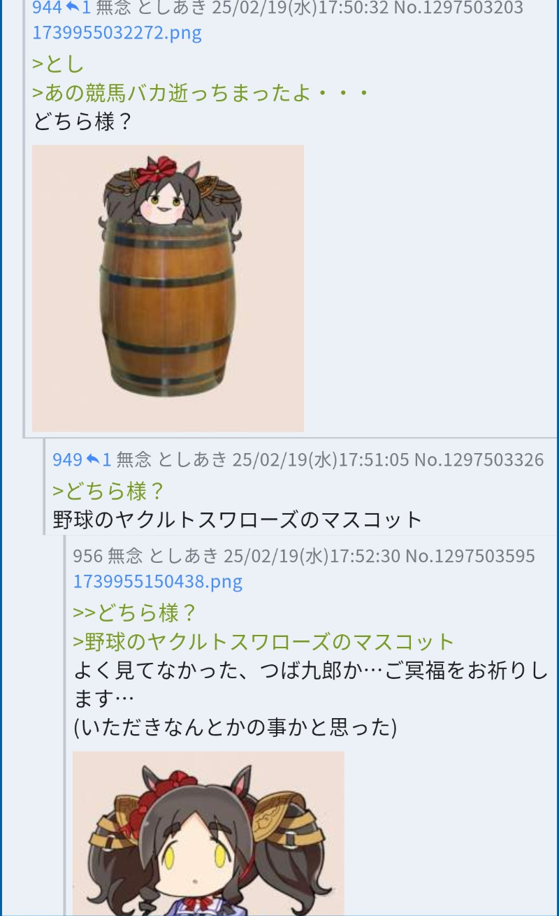 | … | 314無念Nameとしあき25/11/05(水)23:35:56No.1364076249+テイオーさんユキノさんお疲れさまでした |