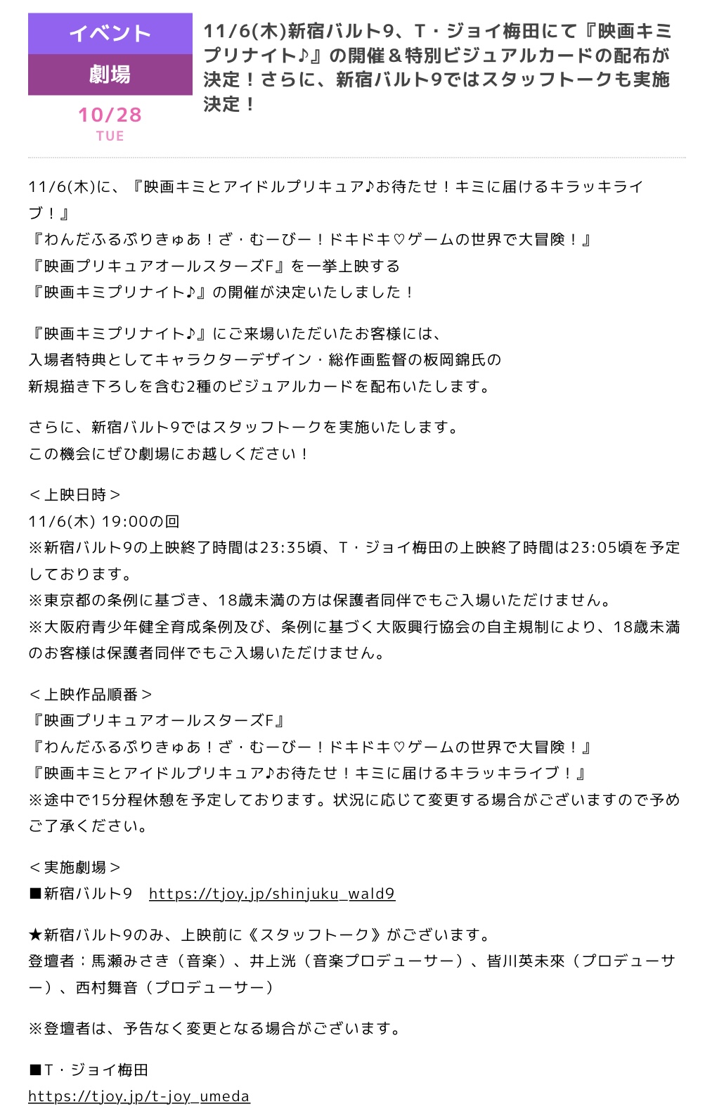 | … | 39無念Nameとしあき25/11/06(木)19:12:30No.1364218882+>広島のキミプリ展のレポート記事見たけどレジェンドアイドルまた来てる… |