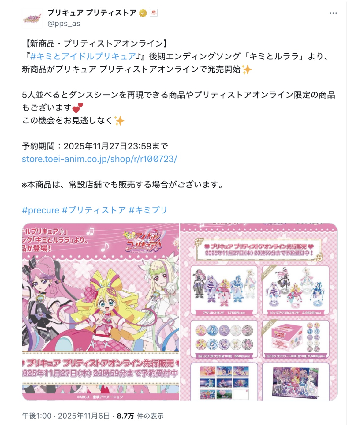 | … | 53無念Nameとしあき25/11/06(木)20:06:33No.1364234817+プリパラの方で出してんのみたけどプリキュアもついにかぁ |