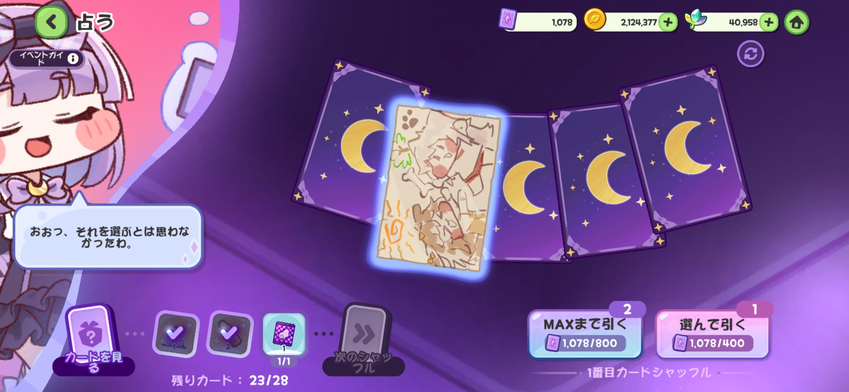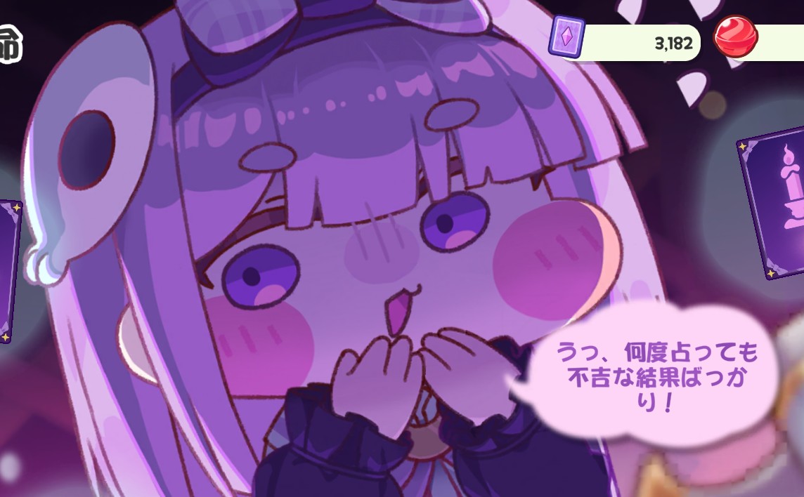 | … | 112無念Nameとしあき25/11/06(木)20:49:12 ID:2MYzG8cMNo.1364248169+イベント中は全キャンディ消費でカードめくる覚悟だったけど罠にゃん? |