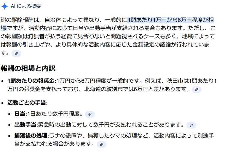 | … | 83無念Nameとしあき25/11/07(金)21:28:09No.1364472575そうだねx2>>もっと安い賃金で熊と鹿をいっぱい狩れって無茶苦茶言っとんな |