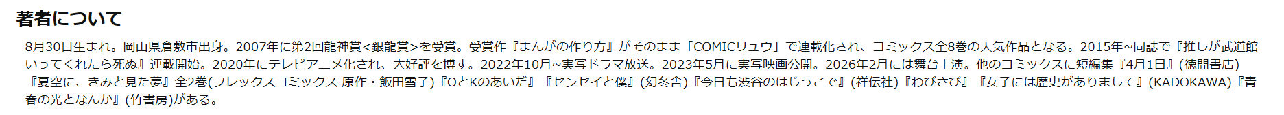 | … | 26無念Nameとしあき25/11/09(日)00:48:32No.1364783967+ 1762616912295.jpg-(112594 B) アマゾンの作者紹介文から「コミックリュウで連載中」が消えてる… |