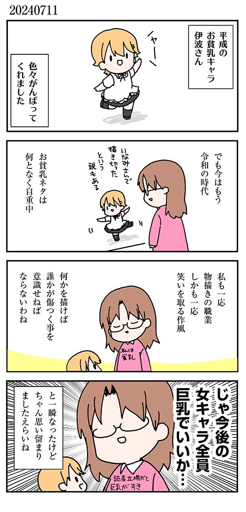 | … | 1無念Nameとしあき25/11/09(日)04:13:34No.1364804372+物書きでもなんでもベテランになるほど乳のサイズにメリハリが出て普通サイズのキャラが居なくなる現象 |