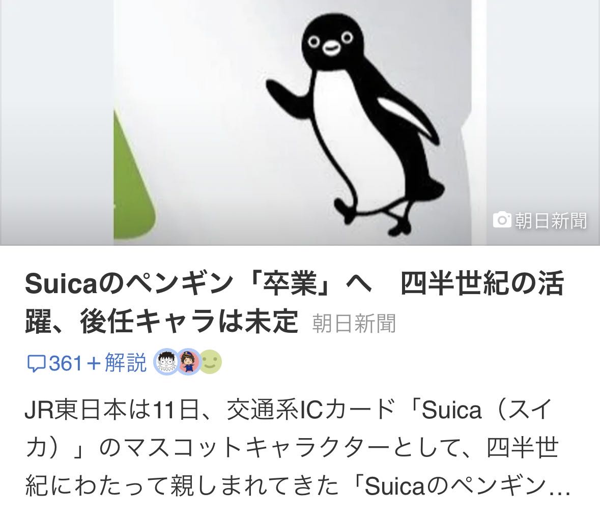 | … | 158無念Nameとしあき25/11/11(火)16:19:48No.1365377909+>まぁこのペンギン別にマスコットとして可愛く無いしデザインにSuica要素もないしな |