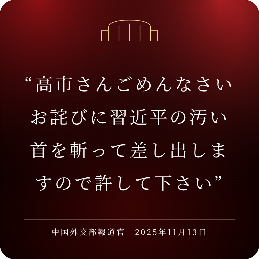 | … | 72無念Nameとしあき25/11/15(土)01:40:27No.1366182663+>【🦎高市悲報】🐉中国外交部、日本人に向けて画像付きポストで警告 |