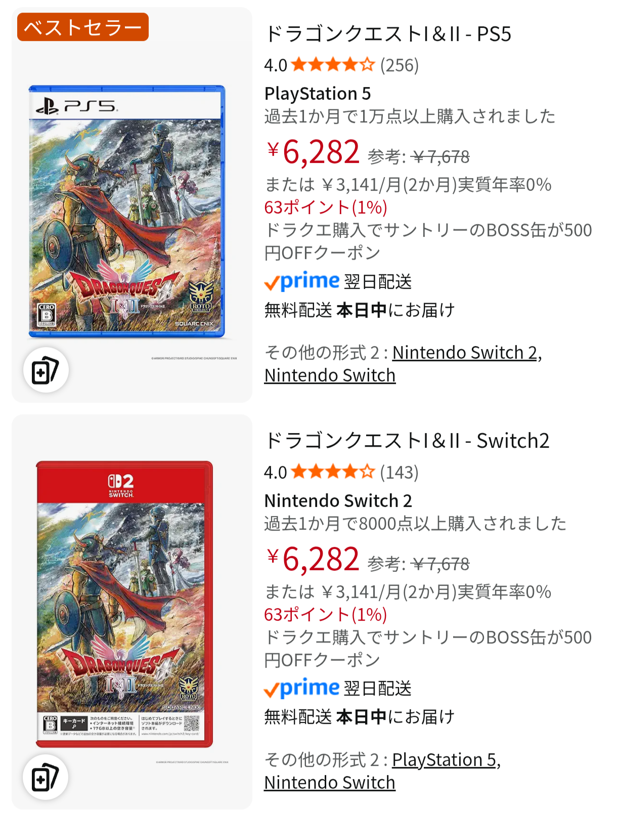 | … | 9無念Nameとしあき25/11/15(土)01:24:39No.1366180964+アマゾンでドラクエ買えばBOSS缶が500円引きに!? |