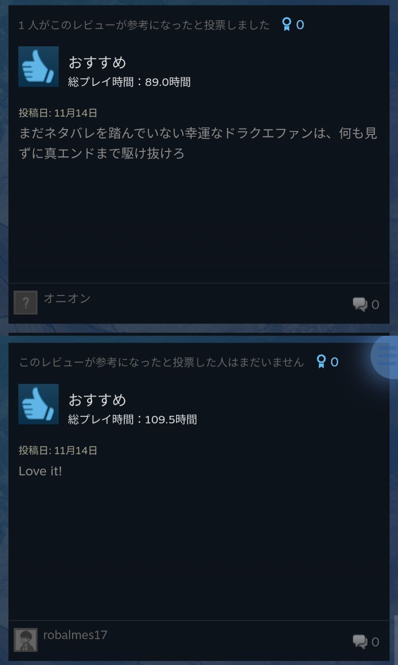 | … | 37無念Nameとしあき25/11/15(土)01:57:15No.1366184240そうだねx5>レビューで多いのは(主に1の)高難易度を褒めてるやつかな |