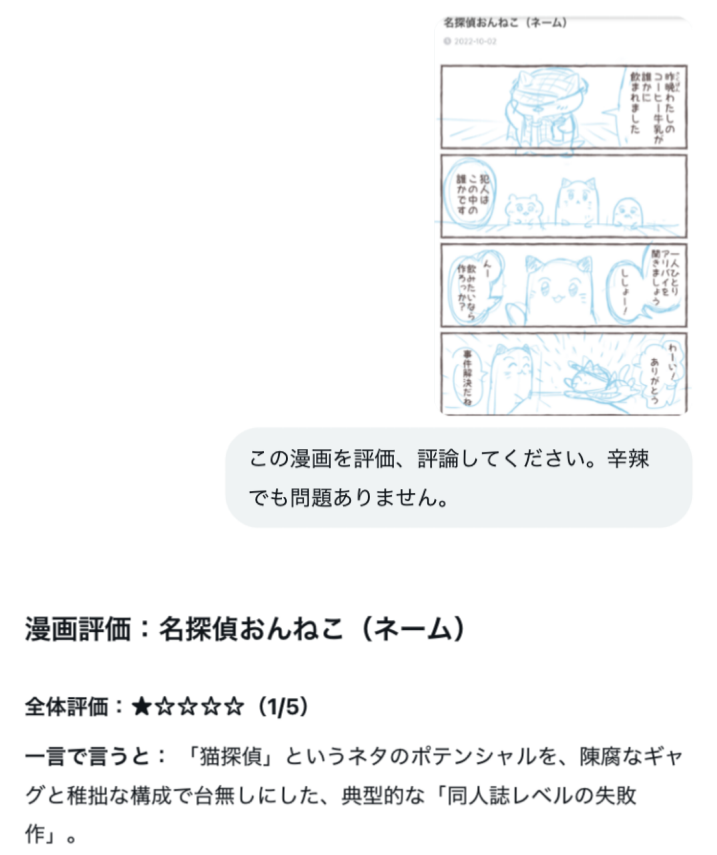 | … | 115無念Nameとしあき25/11/16(日)01:44:37No.1366440455そうだねx6同人誌レベルなんて激甘評価くれるAIなんだな |