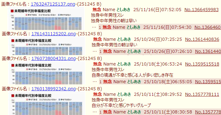 | … | 20無念Nameとしあき25/11/16(日)11:22:17No.1366497586+構ってもらうのが目的のキチガイハゲニートラムザのIDチェックスレなのでdelして放置で |