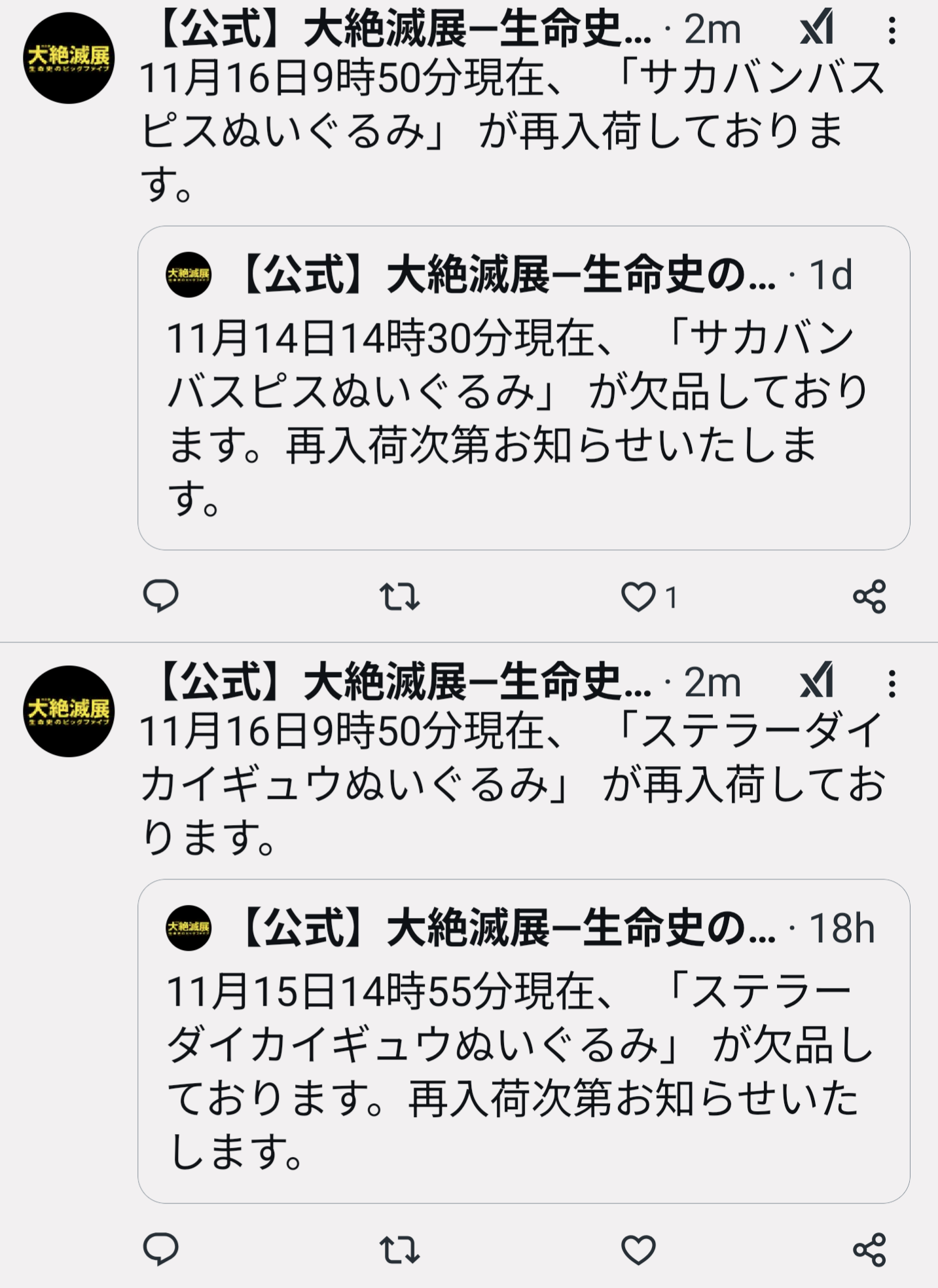 | … | 17無念Nameとしあき25/11/16(日)10:22:36No.1366485987+>復ッッ活!! |