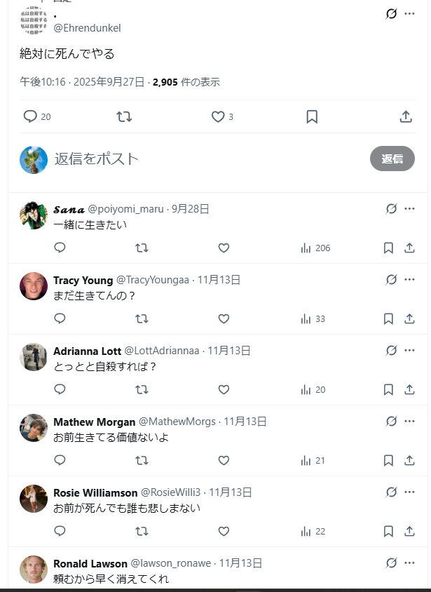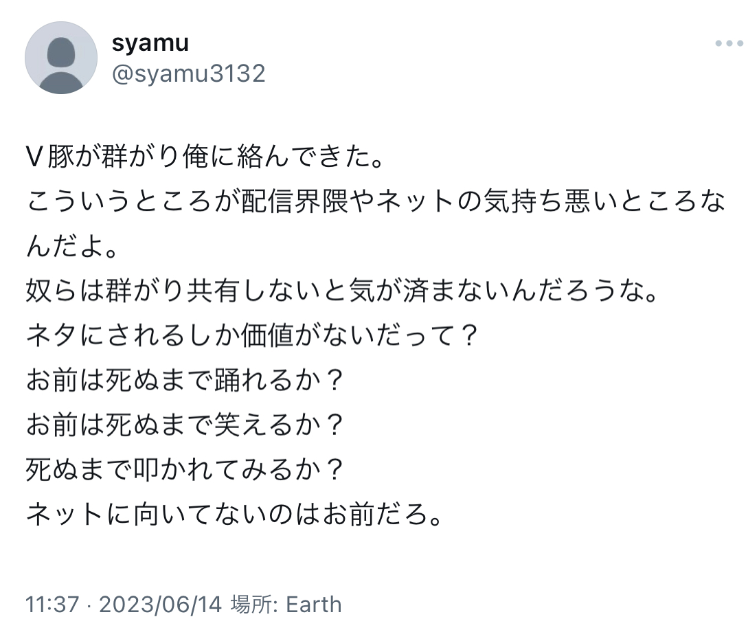 | … | 144無念Nameとしあき25/11/16(日)13:17:48No.1366521790+>たぶんアンチよりも多く特定人物に死ねや自殺しろと言ってる危険組織モグリュウ団 |