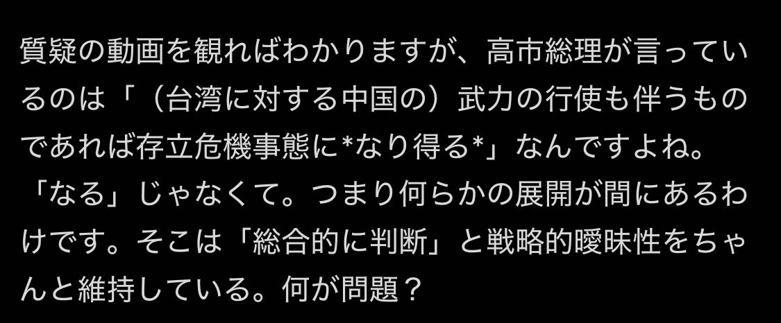| … | 285無念Nameとしあき25/11/16(日)14:17:53No.1366533601+>中国からの意見表明なんだから中国の文化に沿って判断するのが当然なんだが |