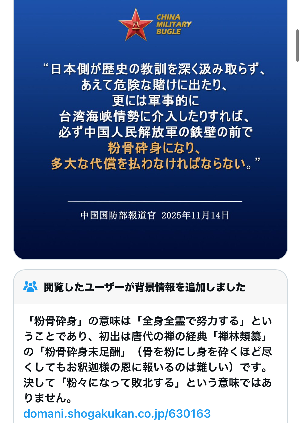 | … | 256無念Nameとしあき25/11/16(日)14:03:17No.1366530839+中国でも意味は同じらしいからこれの使い方がおかしいだけなんだろう |