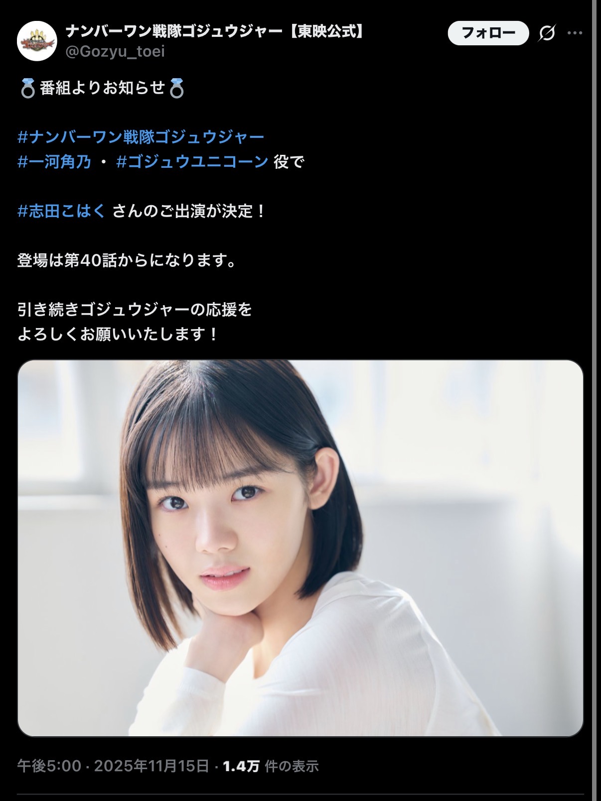 | … | 759無念Nameとしあき25/11/16(日)12:54:17 ID:YSZz5uEkNo.1366516568そうだねx320年後くらいに「ゴジュウユニコーンって役者変わってたのか…当時子供だから気にしてなかった」みたいな人も出てきそう |