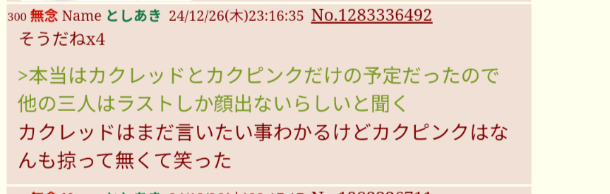 | … | 820無念Nameとしあき25/11/16(日)13:50:23 ID:kLYLg7W.No.1366528435+こはくちゃん来てくれたからよかったけど |
