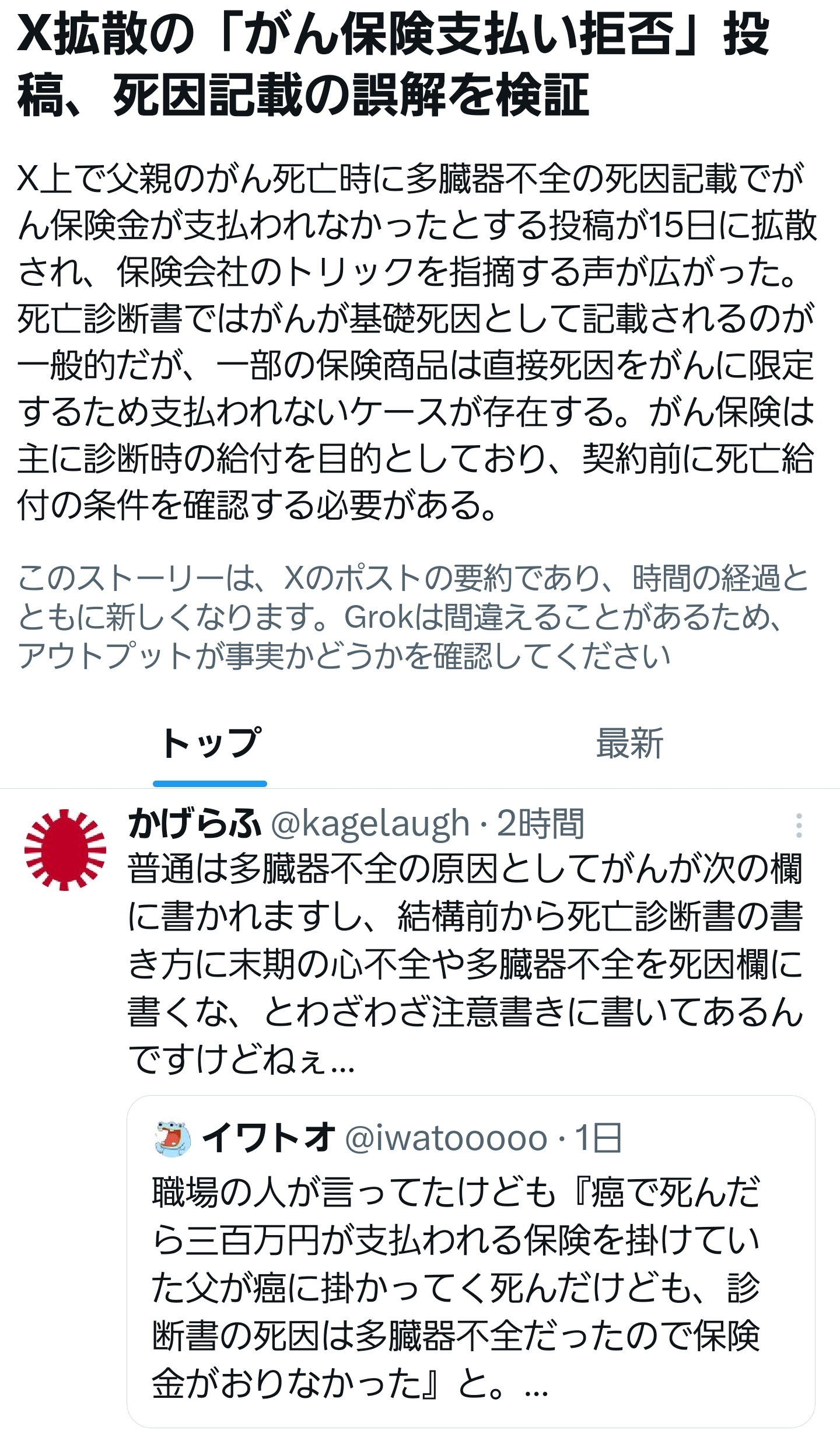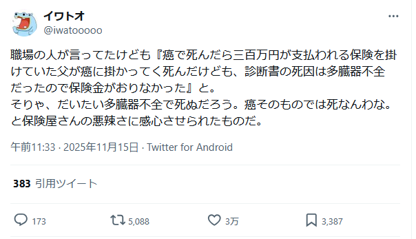 死因(にいたった原因)としてガンを明記しておかないとほけんが支払われないトラップ